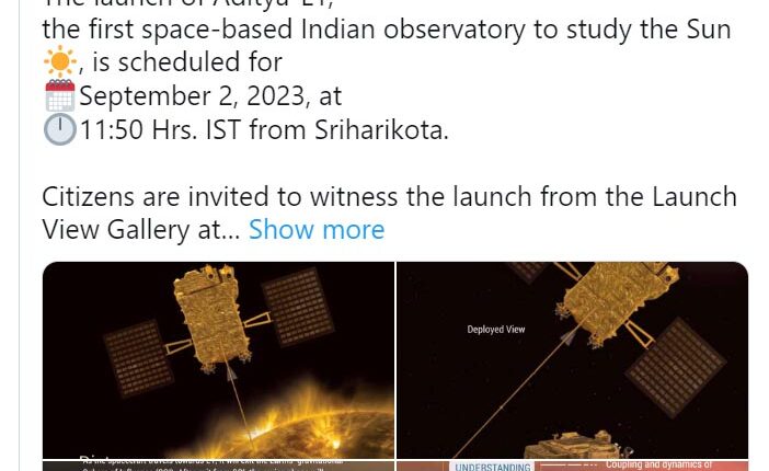 ମିଶନ ସୂର୍ଯ୍ୟ: ସେପ୍ଟେମ୍ବର ୨ରେ ଶ୍ରୀହରିକୋଟାରୁ ଲଞ୍ଚ ହେବ ଆଦିତ୍ୟ ଏଲ-ୱାନ୍