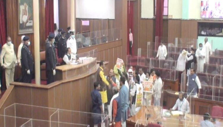 ଶୁକ୍ରବାର ଦିନ ପ୍ରଶ୍ନକାଳ ଆରମ୍ଭରୁ ପ୍ରବଳ ହଟ୍ଟଗୋଳ କରି ଗୃହକୁ ଅଚଳ କରି ଦେଇଥିଲେ କଂଗ୍ରେସ ଓ ବିଜେପି ବିଧାୟକ । ମଣ୍ଡିରୁ ଧାନ ଉଠୁନି, ଚାଷୀଙ୍କ ଟୋକନ ସମସ୍ୟାର ସମାଧାନ ହେଉନି, ଏ ନେଇ ଆଲୋଚନା କରିବାକୁ ଅଡି ବସିଥିଲେ ବିରୋଧୀ । ପ୍ରଥମେ ଉଭୟ ବିଜେପି ଓ କଂଗ୍ରେସ ବିଧାୟକ ମାନେ ଗୃହ ମଧ୍ୟ ଭାଗକୁ ଆସି ପ୍ରବଳ ହୋହାଲ୍ଲା କରିବାରୁ ଗୃହ କାର୍ୟ୍ୟକୁ ଦିନ ୧୧ଟା ୩୦ ଯାଏଁ ମୁଲତବି ରଖିଥିଲେ ବାଚସ୍ପତି । ହେଲେ ସାଢ଼େ ୧୧ଟାରେ ଗୃହ ପୁଣି ଆରମ୍ଭ ହେବା ମାତ୍ରେ ହଟ୍ଟଗୋଳ ଥମିବାରେ ନା ନେଇନଥିଲା। ଚାଷୀ ପ୍ରସଙ୍ଗରେ ଆଲୋଚନା ଲାଗି ବିରୋଧୀ ଅଡ଼ି ବସିବାରୁ ବାଚସ୍ପତି ଅପରାହ୍ନ ୪ଟା ଯାଏଁ ଗୃହକୁ ମୁଲତବି ରଖିଛନ୍ତି। ପରେ ୪ଟାରେ ଗୃହ ଆରମ୍ଭ ହେବା ପରେ ବି ସମାନ ପ୍ରସଙ୍ଗରେ ବିରୋଧୀ ହୋହାଲ୍ଲା କରିବା ସହ ବାଚସ୍ପତିଙ୍କ ପୋଡିୟମ ଉପରକୁ ଚଢ଼ିବା ସହ ମାଇକ ଓପାଡ଼ି ଦେଇଥିଲେ । ବାଚସ୍ପତିଙ୍କ ପୋଡିୟମ ସାମ୍ନାରେ ଥିବା କାଚକୁ କାଚକୁ ତଳକୁ ଖସାଇ ଦେଇଥିଲେ ।